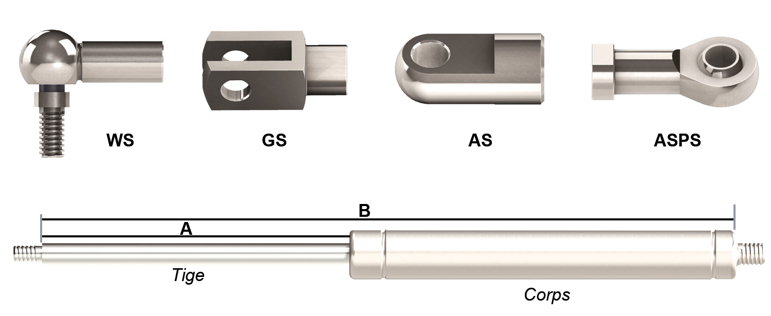 GS8-18 = Tige Ø8mm / Corps Ø18mm - Force mini 50N / Force maxi 750N