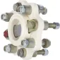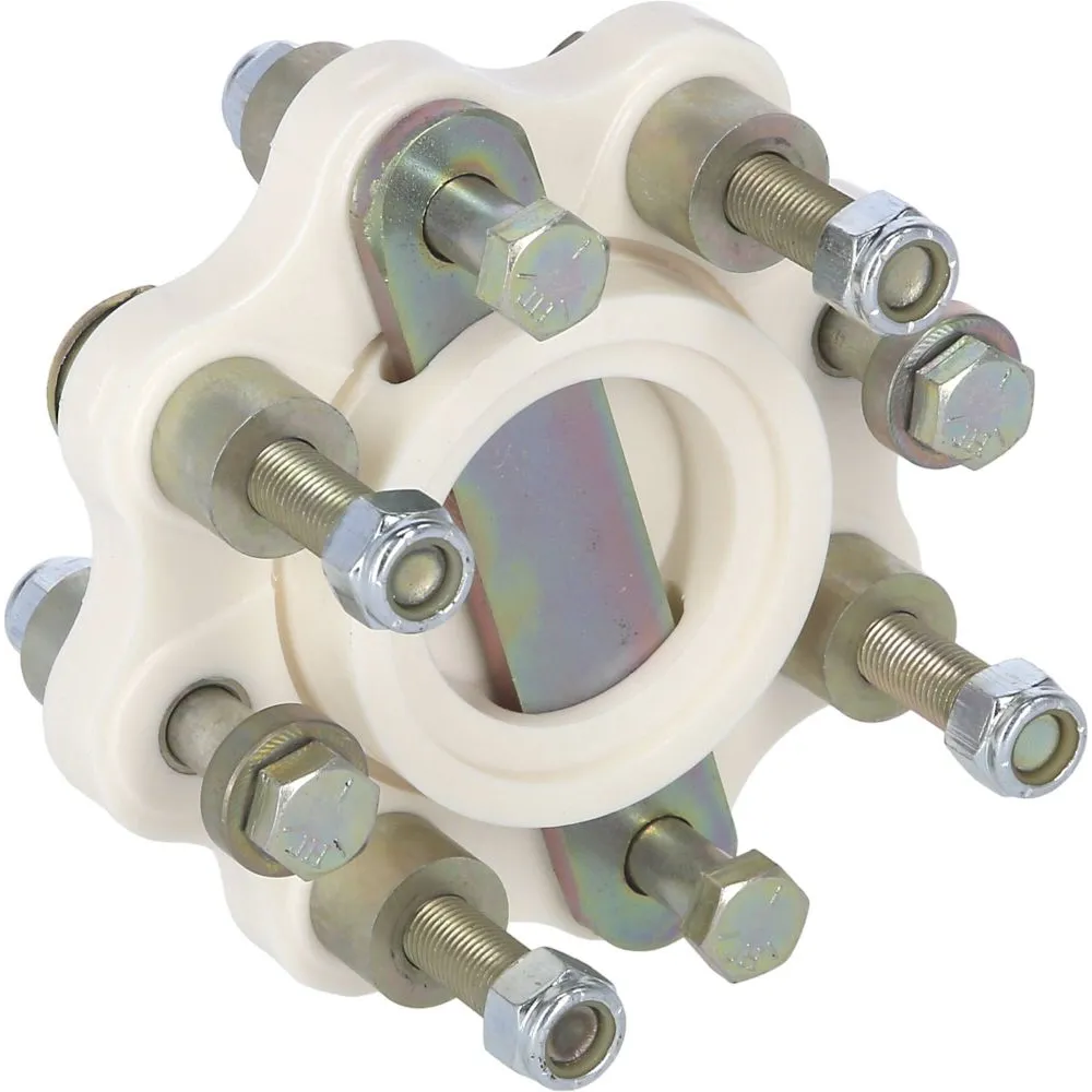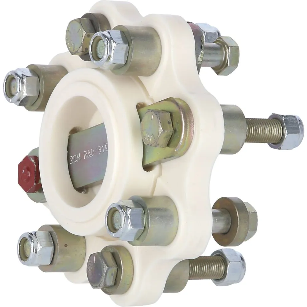Disque en polyuréthane moulé absorbant les chocs, vibrations, bruits, poussées de ligne d'arbre et désalignements temporaires. Isole électriquement la ligne d'arbre. Ni usure, ni entretien. Fourni avec visserie complète.
