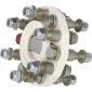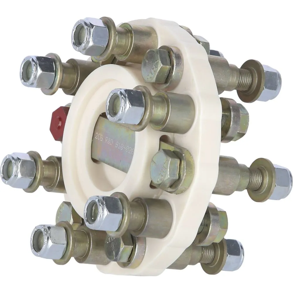 Disque en polyuréthane moulé absorbant les chocs, vibrations, bruits, poussées de ligne d'arbre et désalignements temporaires. Isole électriquement la ligne d'arbre. Ni usure, ni entretien. Fourni avec visserie complète.