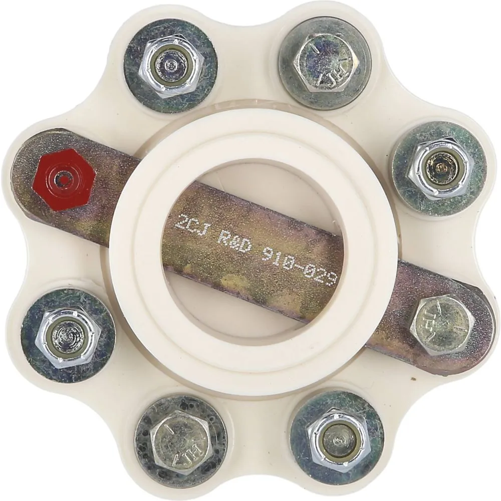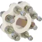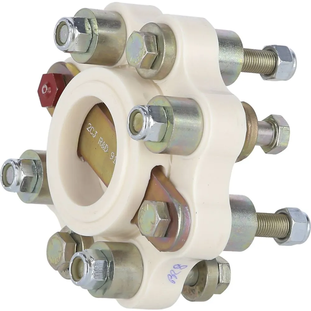 Disque en polyuréthane moulé absorbant les chocs, vibrations, bruits, poussées de ligne d'arbre et désalignements temporaires. Isole électriquement la ligne d'arbre. Ni usure, ni entretien. Fourni avec visserie complète.