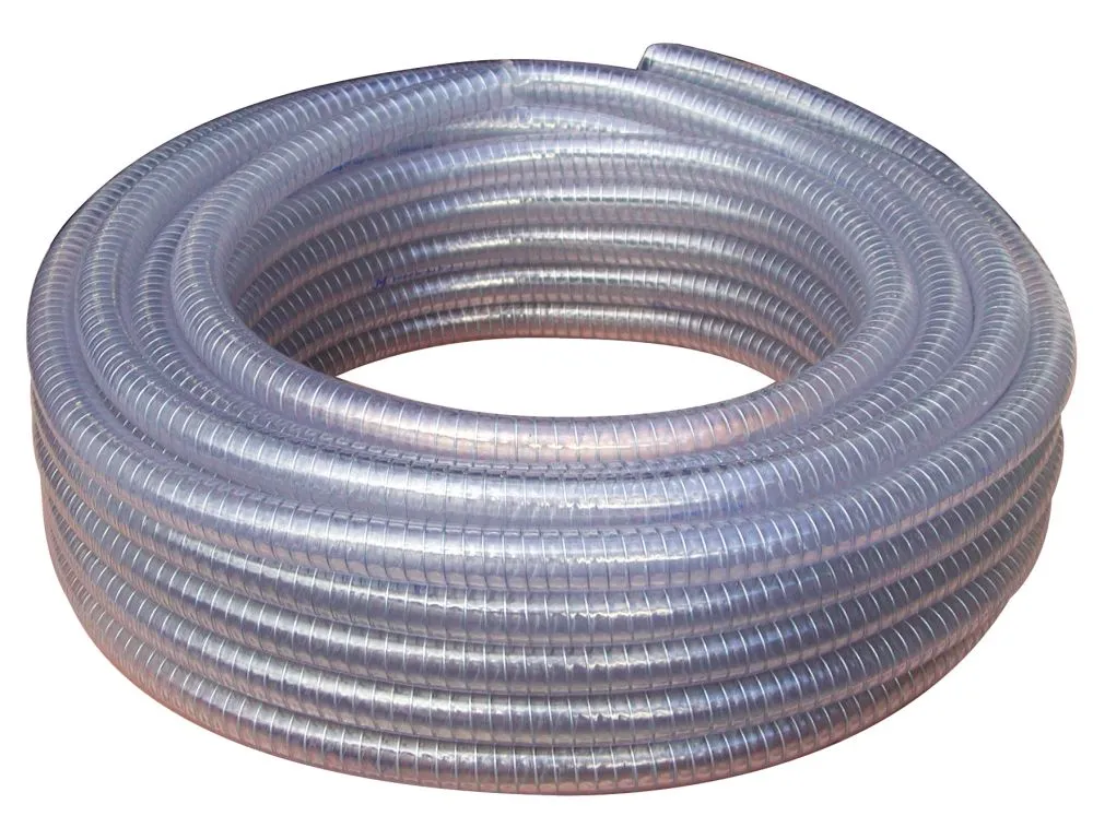 Tuyau haute résistance. Très flexible et robuste, en PVC qualité alimentaire renforcé par une spirale acier.