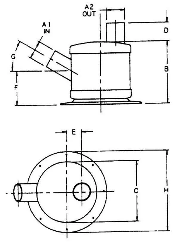 Pots à barbotage E à 45° / S Verticale 5'' Ø127mm