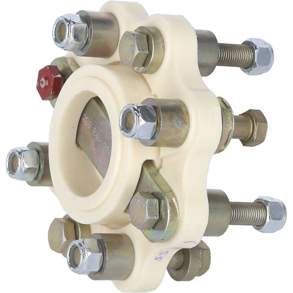 Disque en polyuréthane moulé absorbant les chocs, vibrations, bruits, poussées de ligne d'arbre et désalignements temporaires. Isole électriquement la ligne d'arbre. Ni usure, ni entretien. Fourni avec visserie complète.