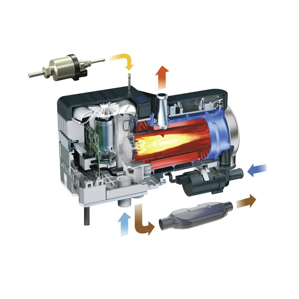 - Intégration dans le circuit d’eau de refroidissement pour un préchauffage moteur et habitacle