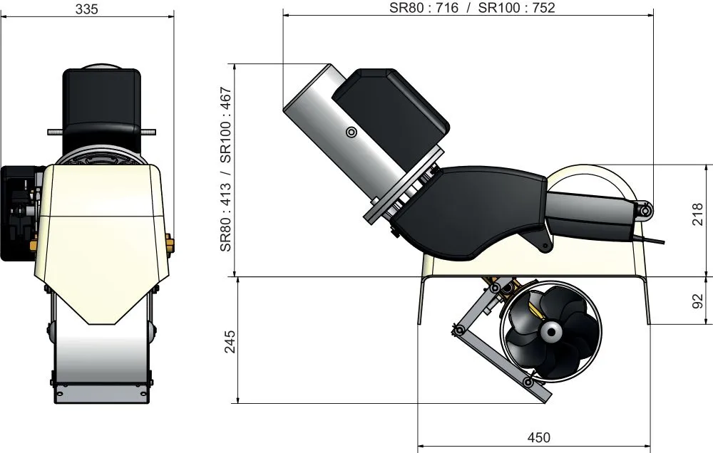 - Retour d’information au panneau de commande sur la position du propulseur.