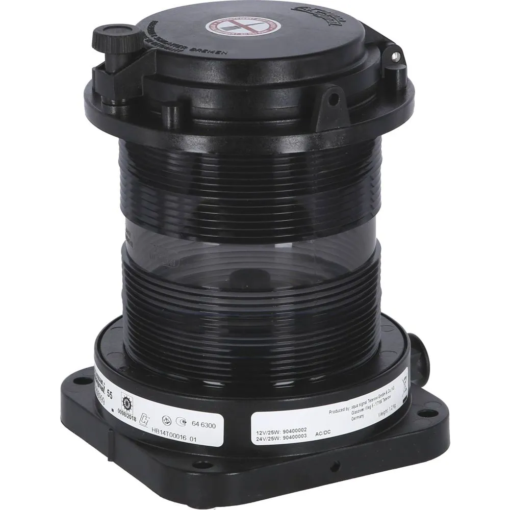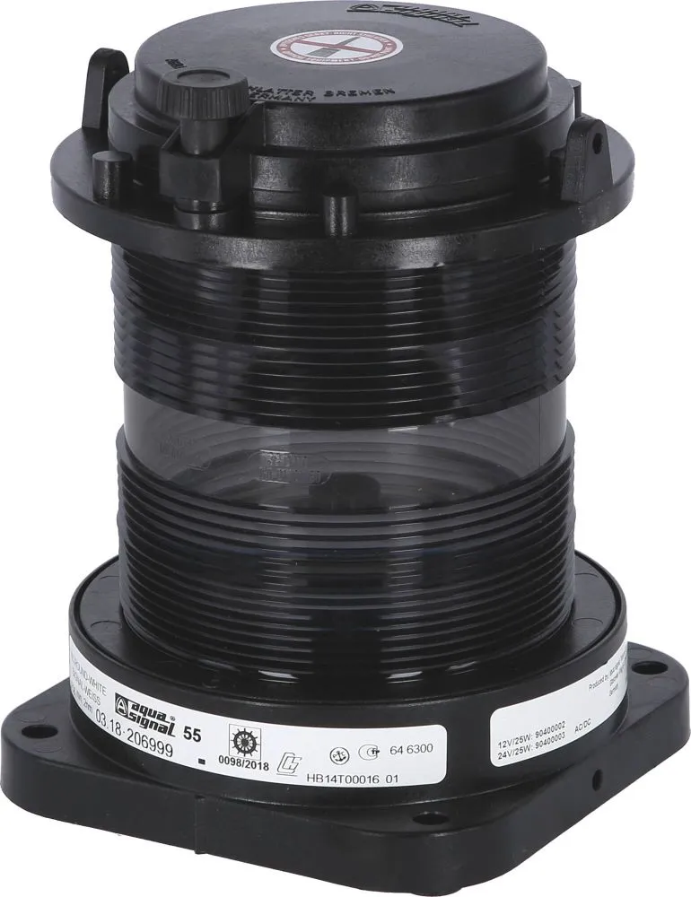 Série homologuée VERITAS. Les feux marqués d’une ancre sont homologués pour la navigation fluviale européenne. Corps en polycarbonate noir renforcé de fibre de verre et matériaux inoxydables. Norme de protection IP56. Disponible en 24V. Existe également en 12V. Disponible avec ampoule LP281 ou LP282.