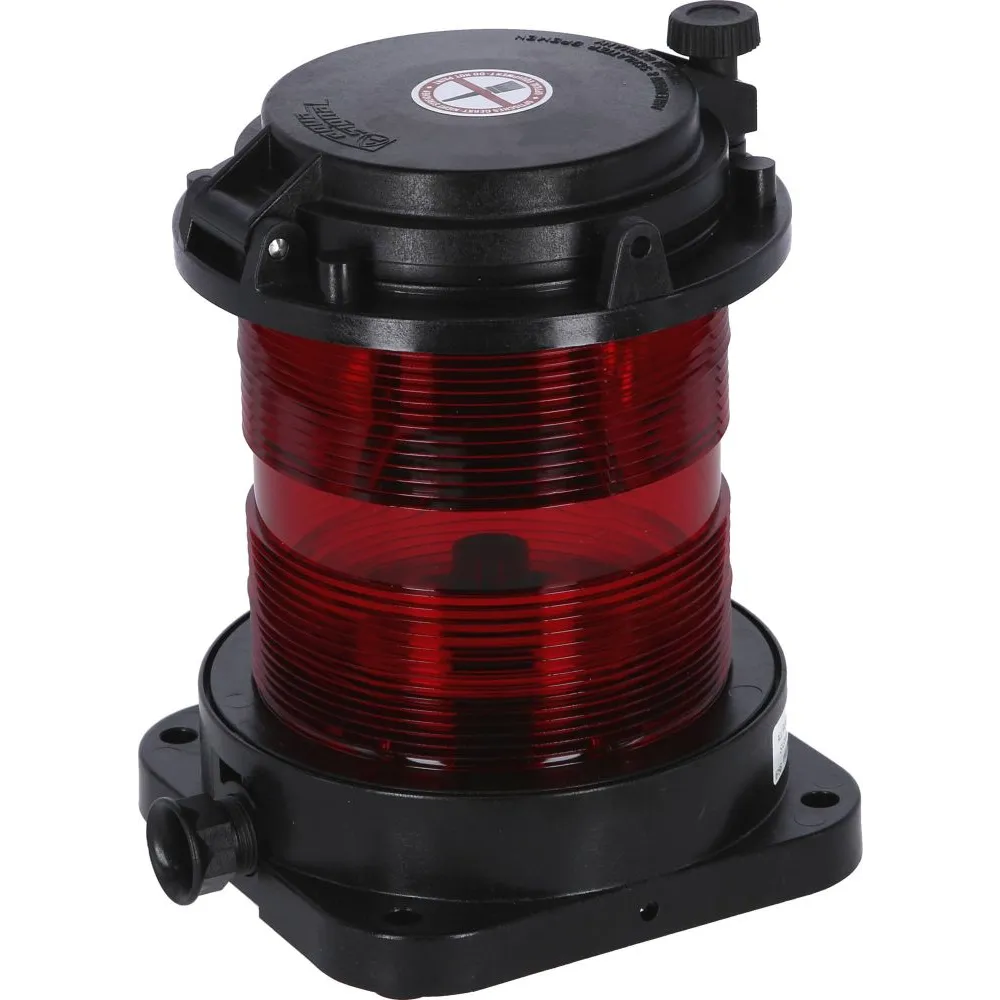 Série homologuée VERITAS. Les feux marqués d’une ancre sont homologués pour la navigation fluviale européenne. Corps en polycarbonate noir renforcé de fibre de verre et matériaux inoxydables. Norme de protection IP56. Disponible en 24V. Existe également en 12V. Disponible avec ampoule LP281 ou LP282.