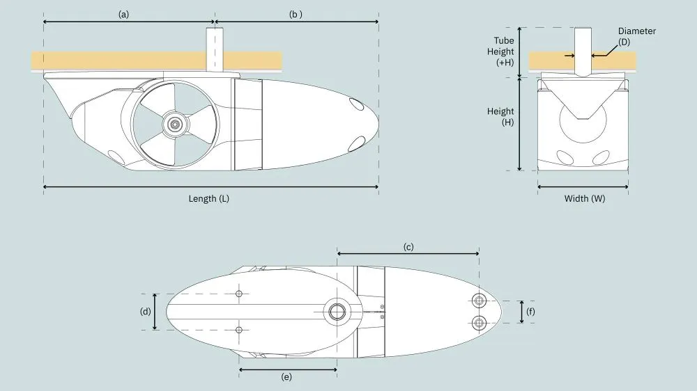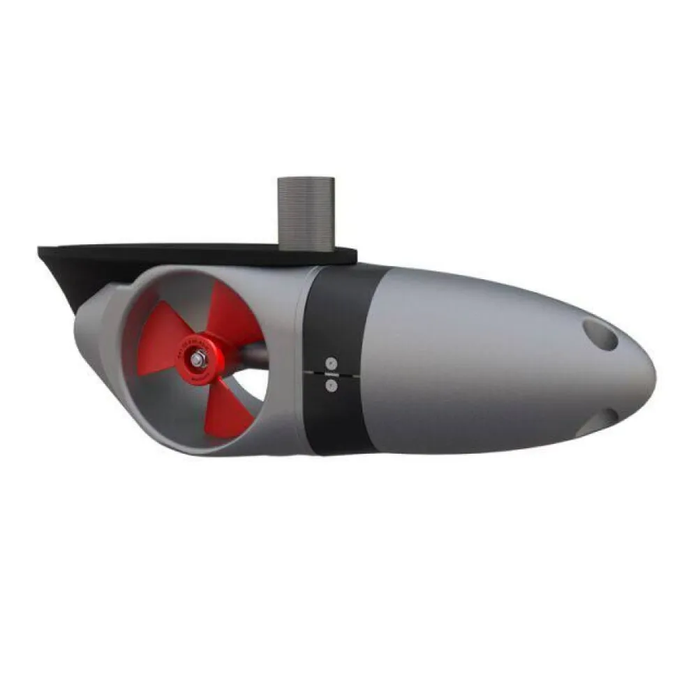 A l’étrave, le propulseur peut être installé très en avant du centre de giration, améliorant l’efficacité, sans risque de ventilation de l’hélice.