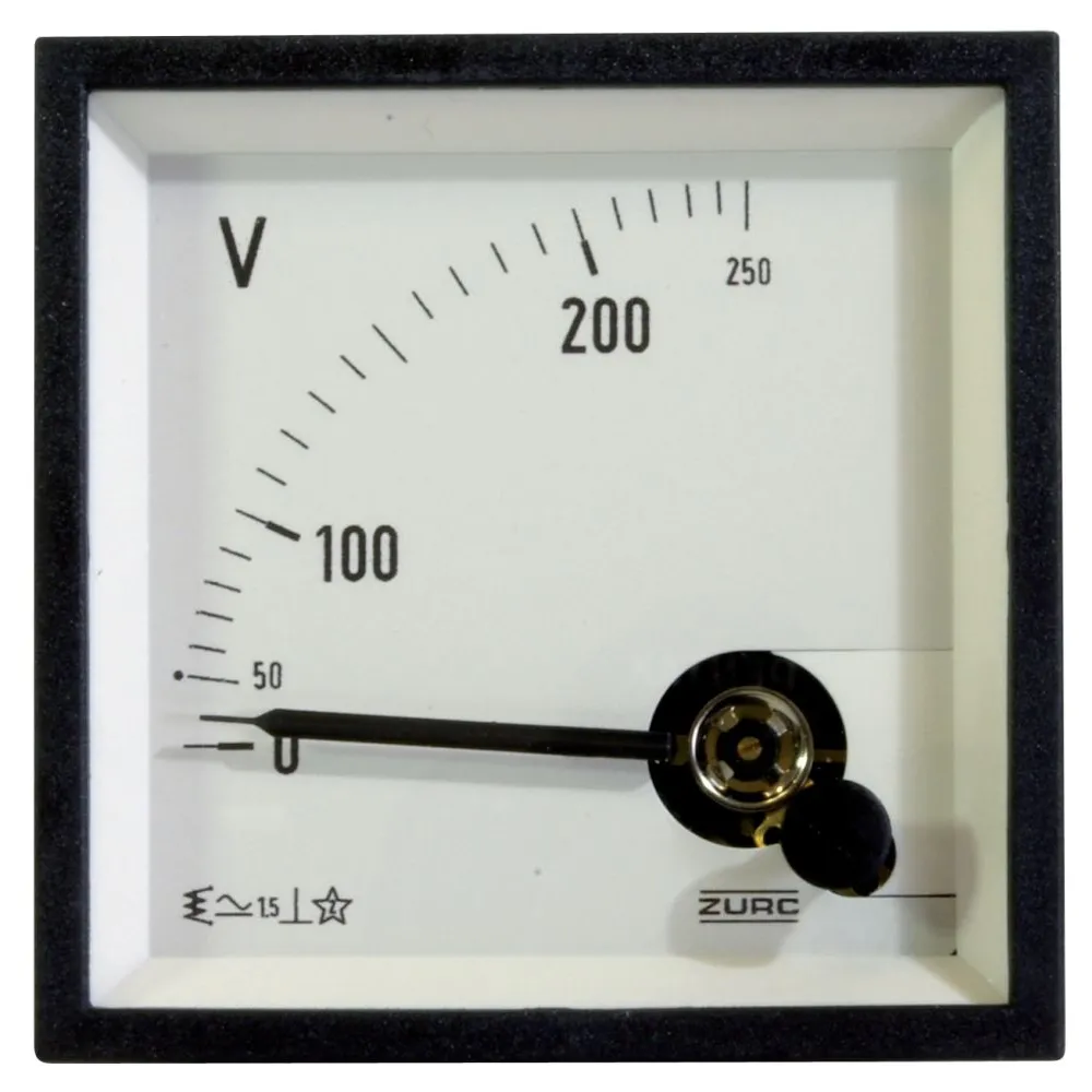 Gamme de voltmètres analogiques carrés ou rond, de différentes marques de 12 à 250V.