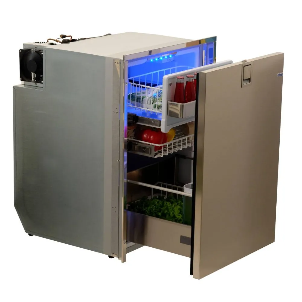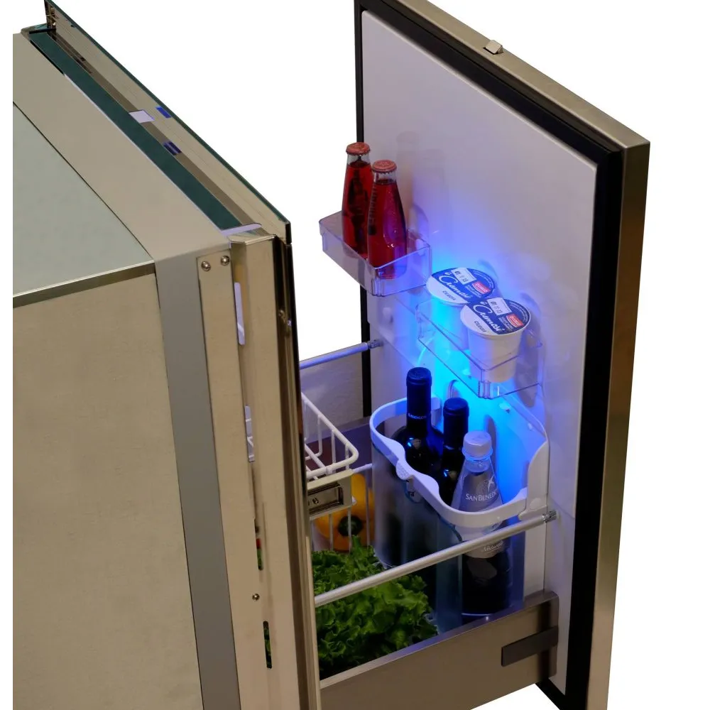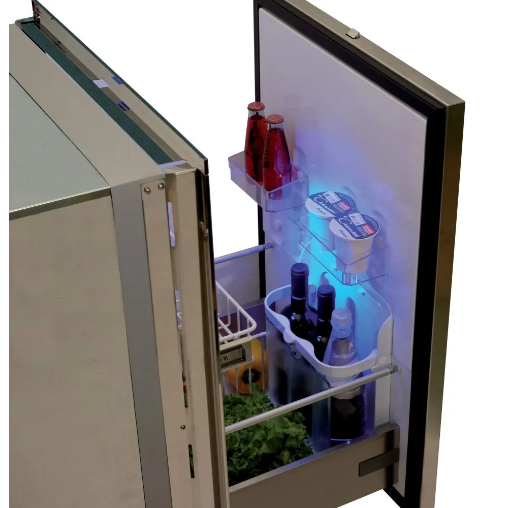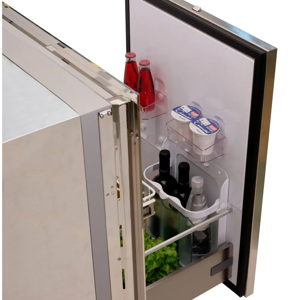 - Réfrigérateurs à tiroirs inox de 16 à 190L avec porte flush alignée avec le cadre d’encastrement