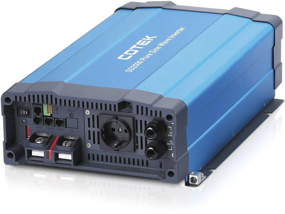 Convertisseur Pur Sinus avec relais de transfert intégré (basculement automatique du courant de source secteur vers les consommateurs).