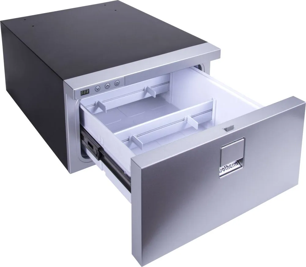 - Réfrigérateurs à tiroirs inox de 16 à 190L avec porte flush alignée avec le cadre d’encastrement