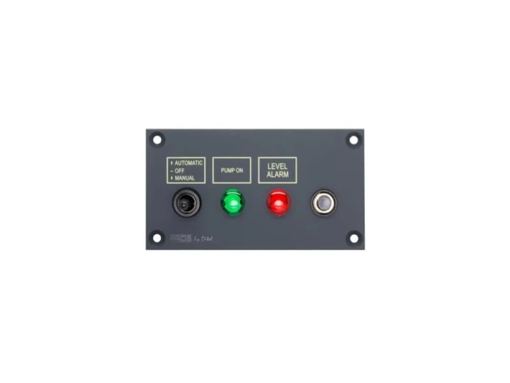 Chaque module comprend 1 interrupteur auto-off-manuel, 1 voyant vert de pompe en fonctionnement,1 voyant rouge d’alarme de niveau et 1 fusible thermique réarmable.