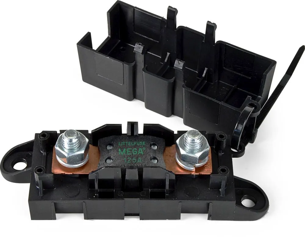 Porte-fusible Mega avec capot de protection.