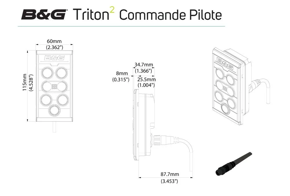 La télécommande filaire du pilote du Triton2 est facile à installer et offre une connectivité NMEA 2000 par câble unique pour l'alimentation et les données. Plusieurs télécommandes filaires et écrans Triton2 peuvent être installés pour permettre le contrôle du pilote automatique depuis n'importe où à bord.