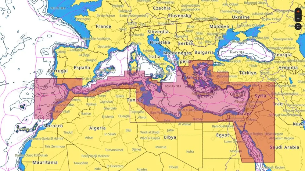 - Cartographie vectorielle complète dérivée des sources hydrographiques officielles.