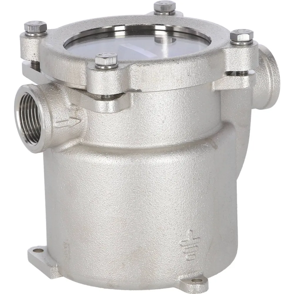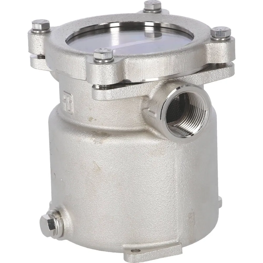 Corps en bronze nickelé, tamis et visserie en inox 316L.