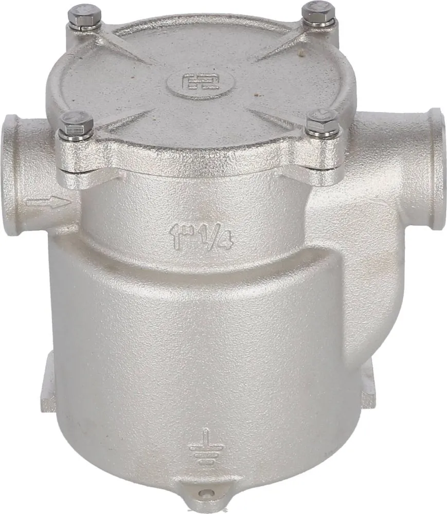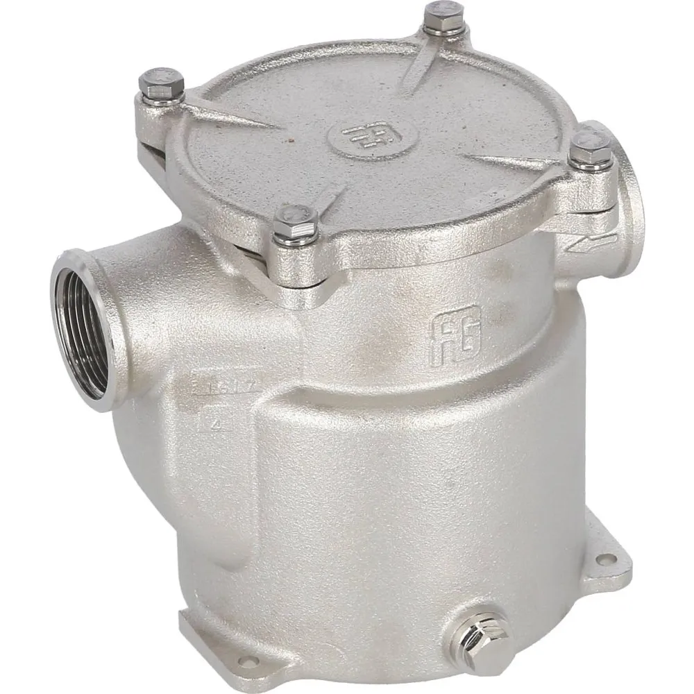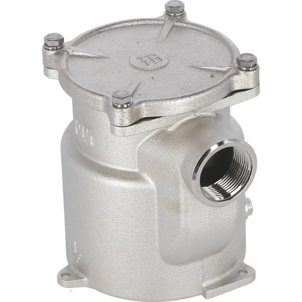 Corps en bronze nickelé, tamis et visserie en inox 316L.