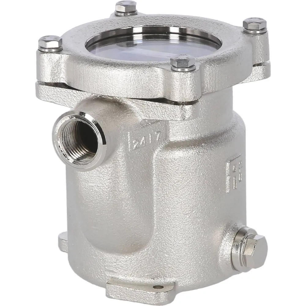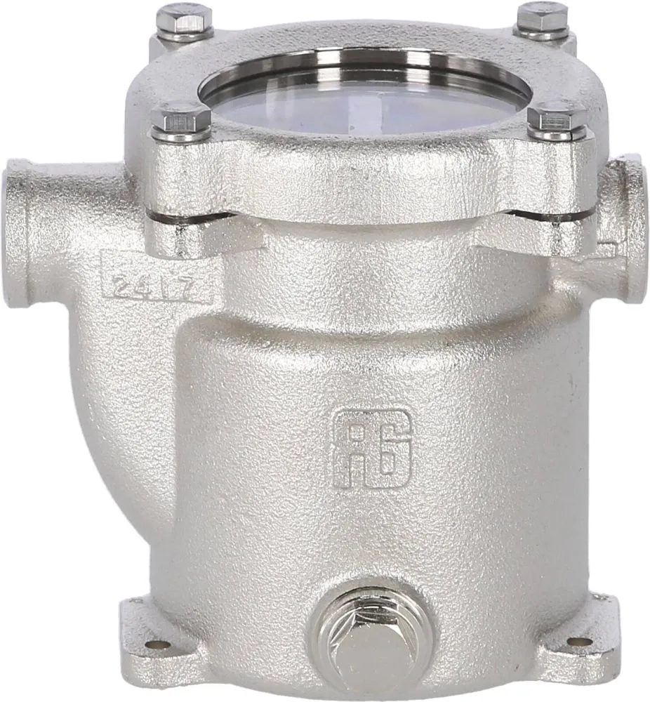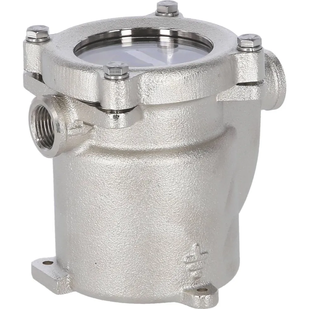 Corps en bronze nickelé, tamis et visserie en inox 316L.