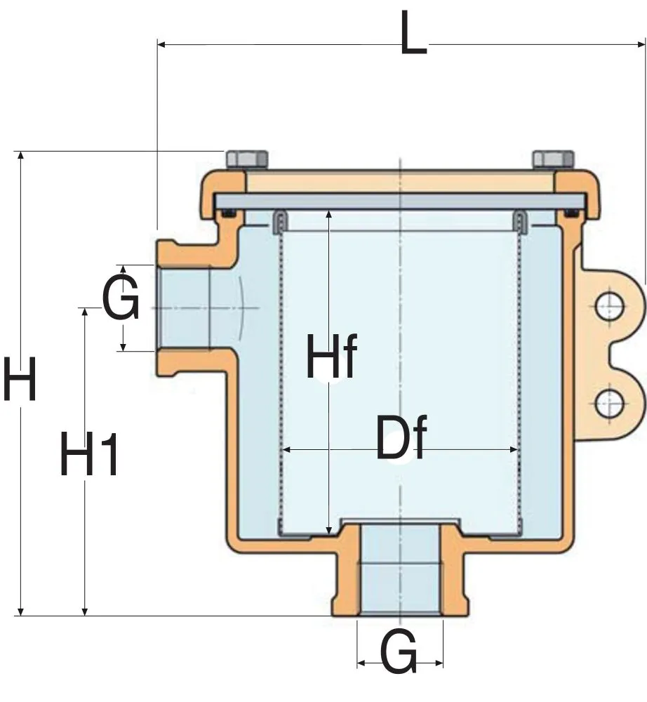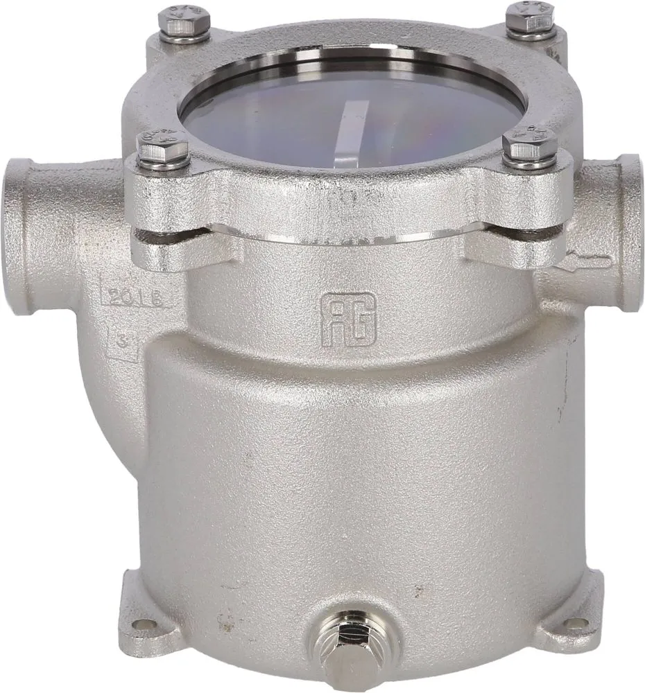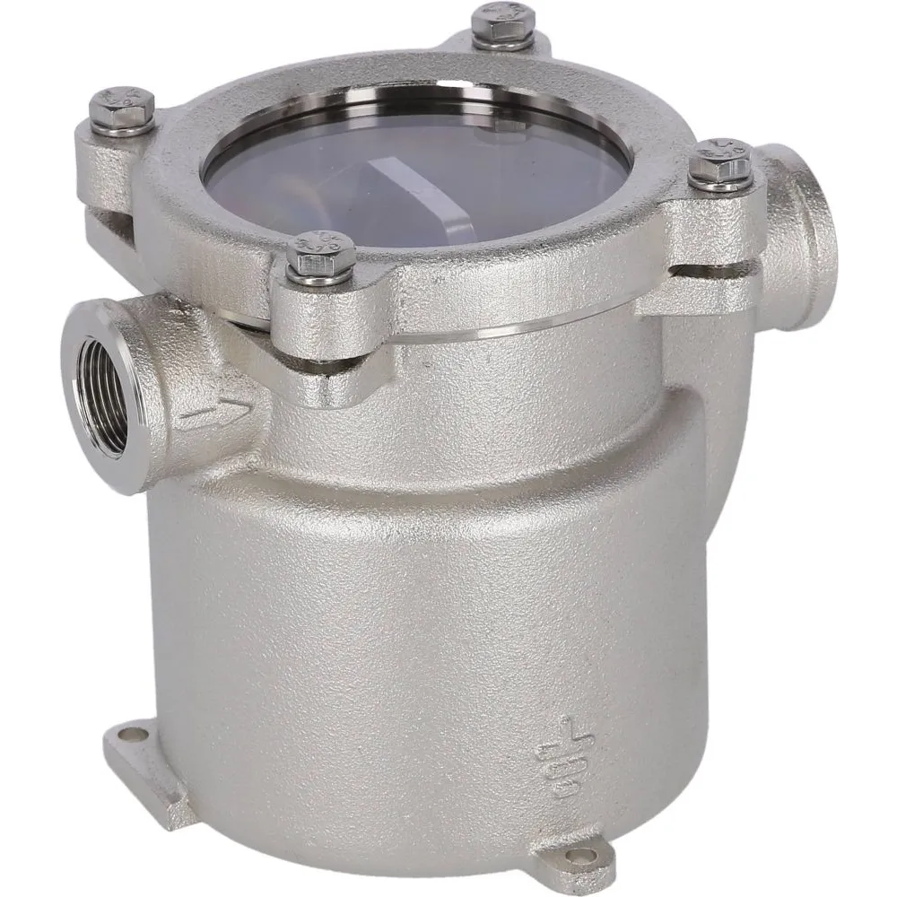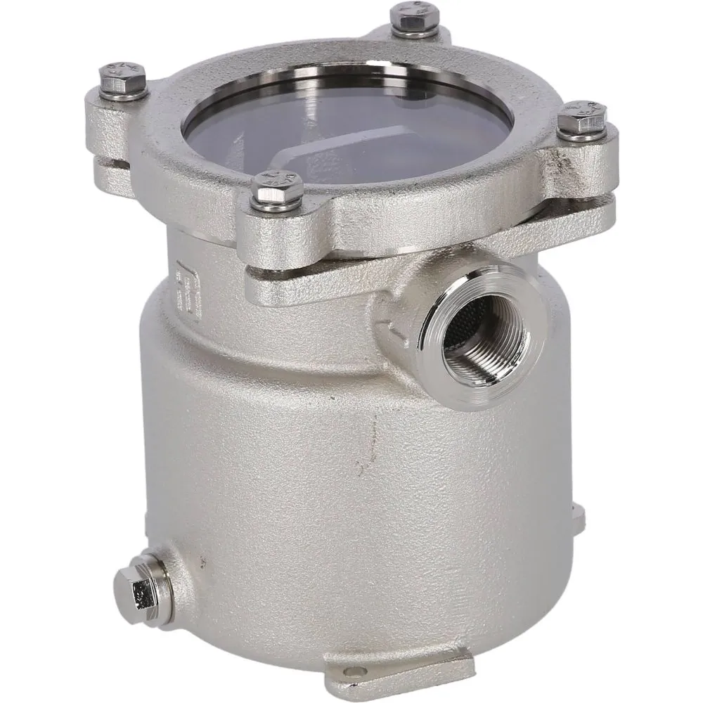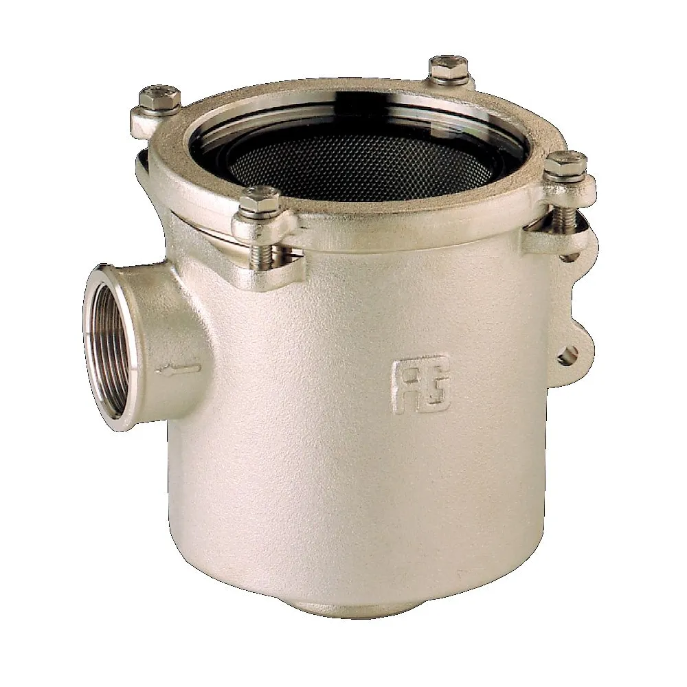 Corps en bronze nickelé, tamis et visserie en inox 316L.