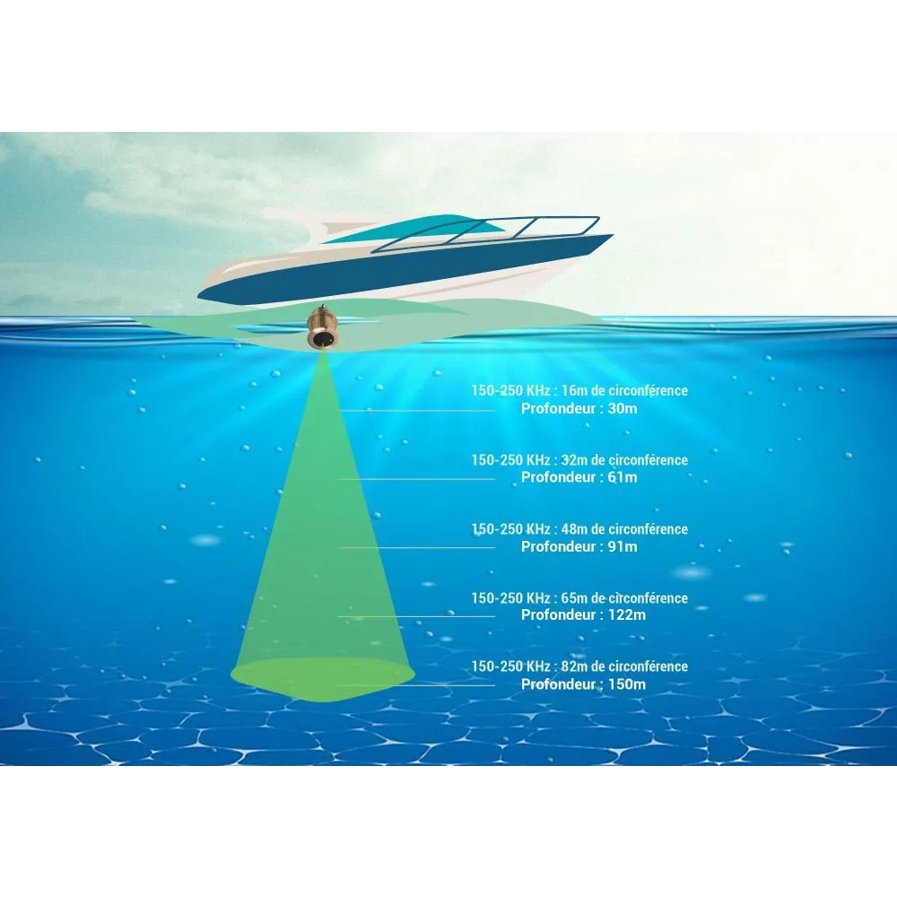 Sonde traversante Bronze Chirp 600W High-Wide avec compensation d'angle de carène 0°.