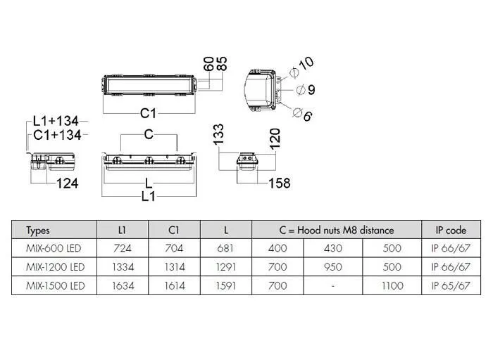 Eclairage technique LED 230V Série MIXS67-600 LED 2500