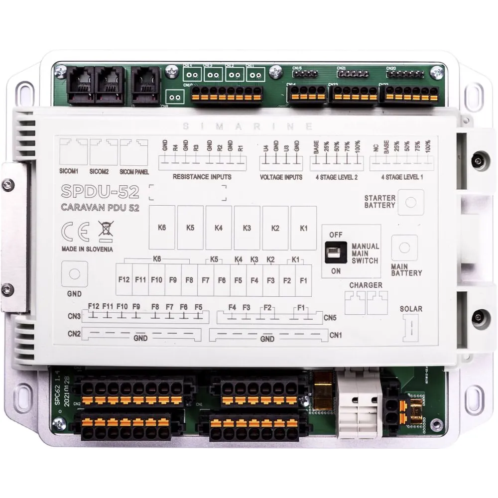 Distribution électrique en 12Vdc pour PICO ou VIA avec 4 shunts, avec interface pour sondes de niveau et température, avec 6 relais dont 2x20A, 2x15A, 2x10A, protocole SiCom et alimentation 8 à 22Vdc