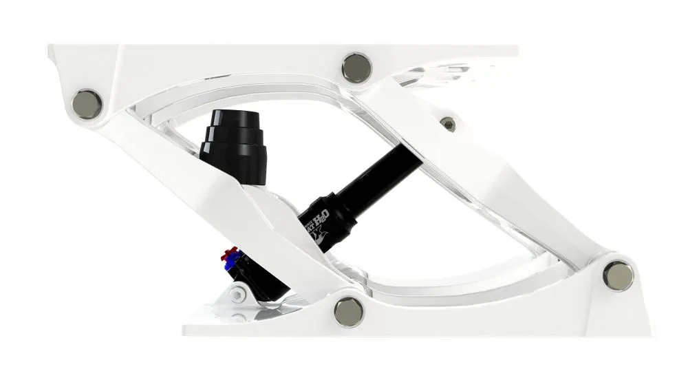 La base de suspension marine Shockwave S5-AL en aluminium est fabriquée en aluminium moulé anodisé A360, recouvert d'un revêtement en poudre durable. Conçue pour offrir une stabilité accrue par rapport à la S5-LW dans des conditions maritimes modérées à fortes, grâce à son design de suspension à action avant à 4 points.