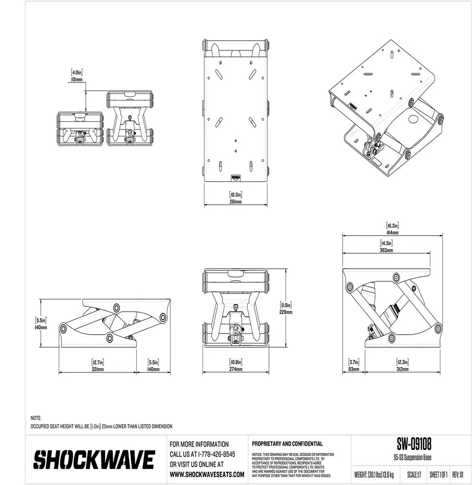 La base de suspension en acier inoxydable Shockwave S5-SS en acier inoxydable 316 électropoli pour une durabilité à vie. Cette version est particulièrement adaptée aux environnements marins à forte salinité, à l'humidité élevée et aux conditions de mer modérées à fortes.