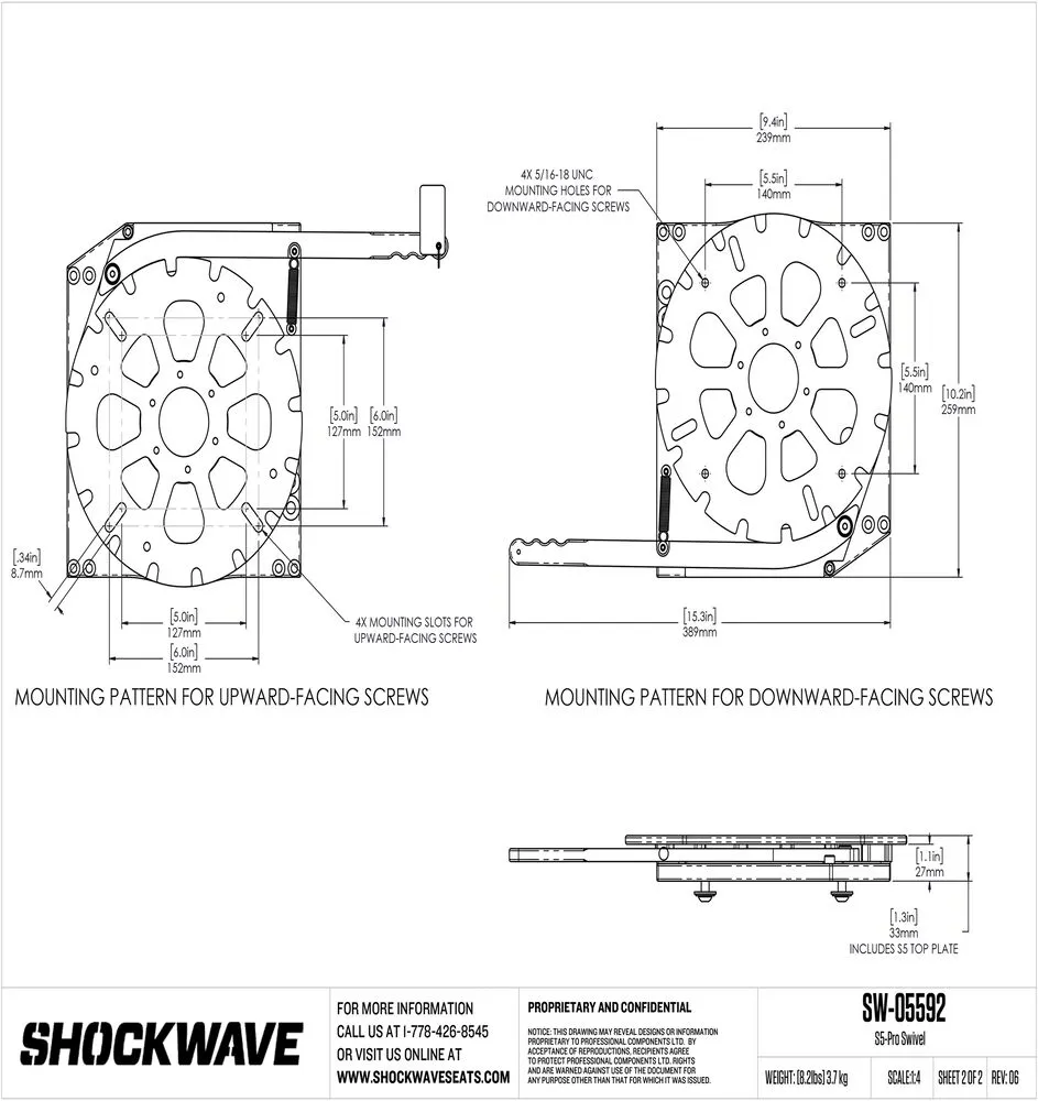 Les accessoires Shockwave sont conçus pour s'adapter aux sièges Shockwave S5 Corbin et peuvent ne pas être compatibles avec des sièges marins de marques différentes. Veuillez vérifier que le motif de boulonnage de votre siège est compatible avec les accessoires Shockwave ou envisager un système d'adaptateur.