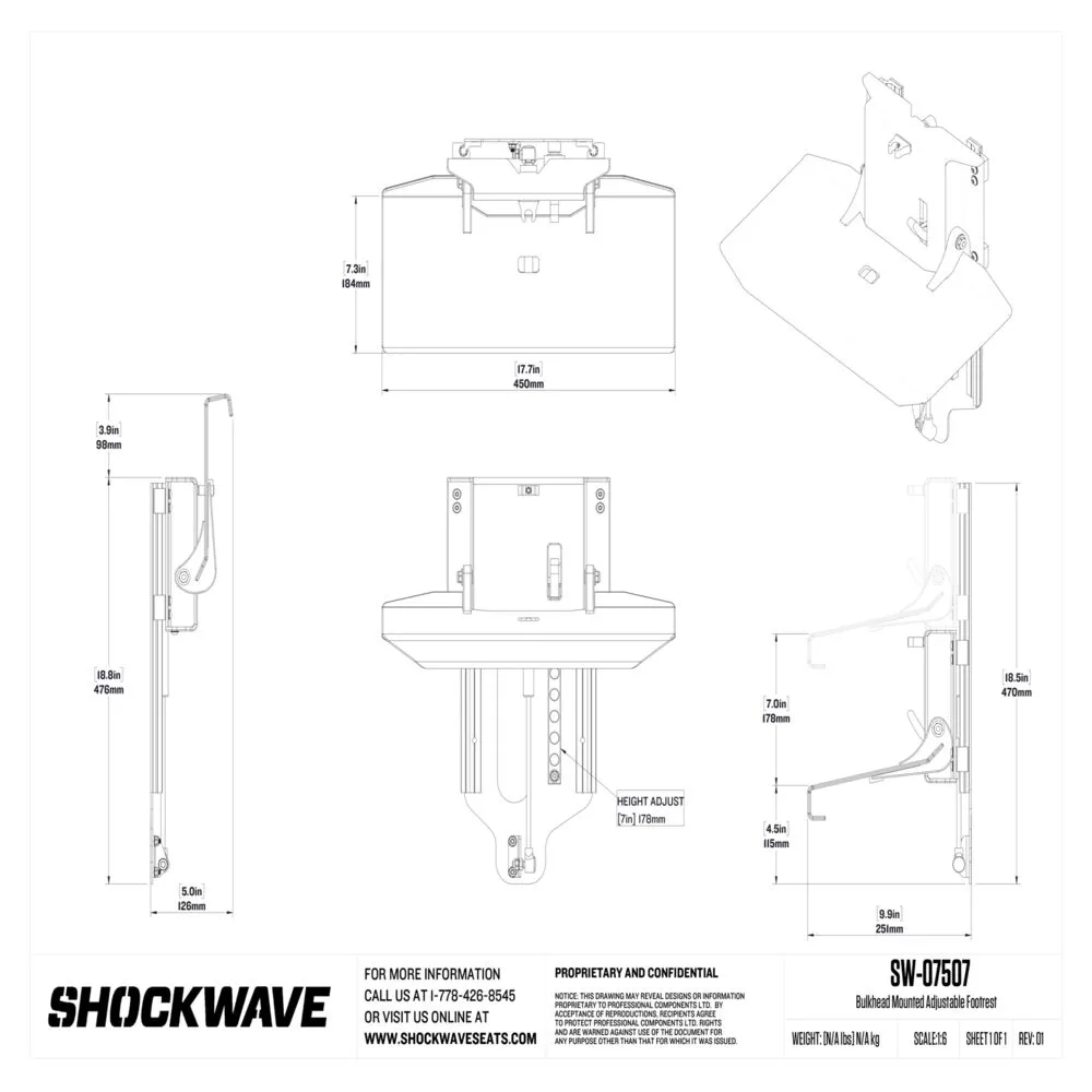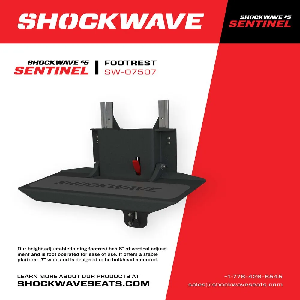 Ce repose-pied repliable à hauteur réglable offre 6" de déplacement et est actionné par le pied pour plus de commodité. Il offre une plateforme stable de 17" de large et est conçu pour être monté sur un tableau arrière d'une console.
