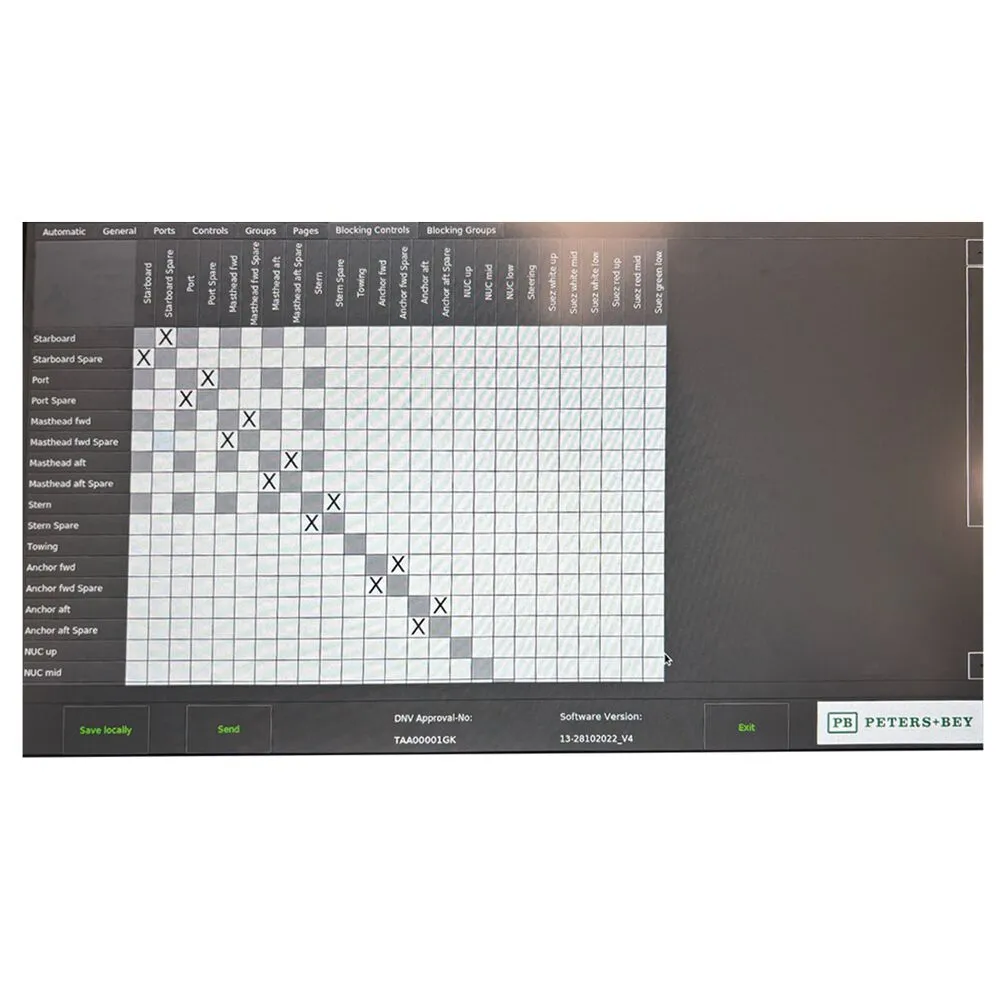 L'interface est personnalisable à distance. Il est possible d'importer notamment la silhoueħe du bateau et de programmer les différents modes d'éclairage de la mâture (route, mouillage, remorquage, Suez, …) ou commander les éclairages des ponts. Les feux de secours sont facilement acধonnables en cas de défaillance des feux principaux.