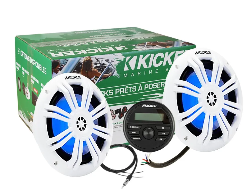 - 1x Source Kicker KMC2 : Media Center format jauge, étanche (IPX66), Bluetooth/USB.