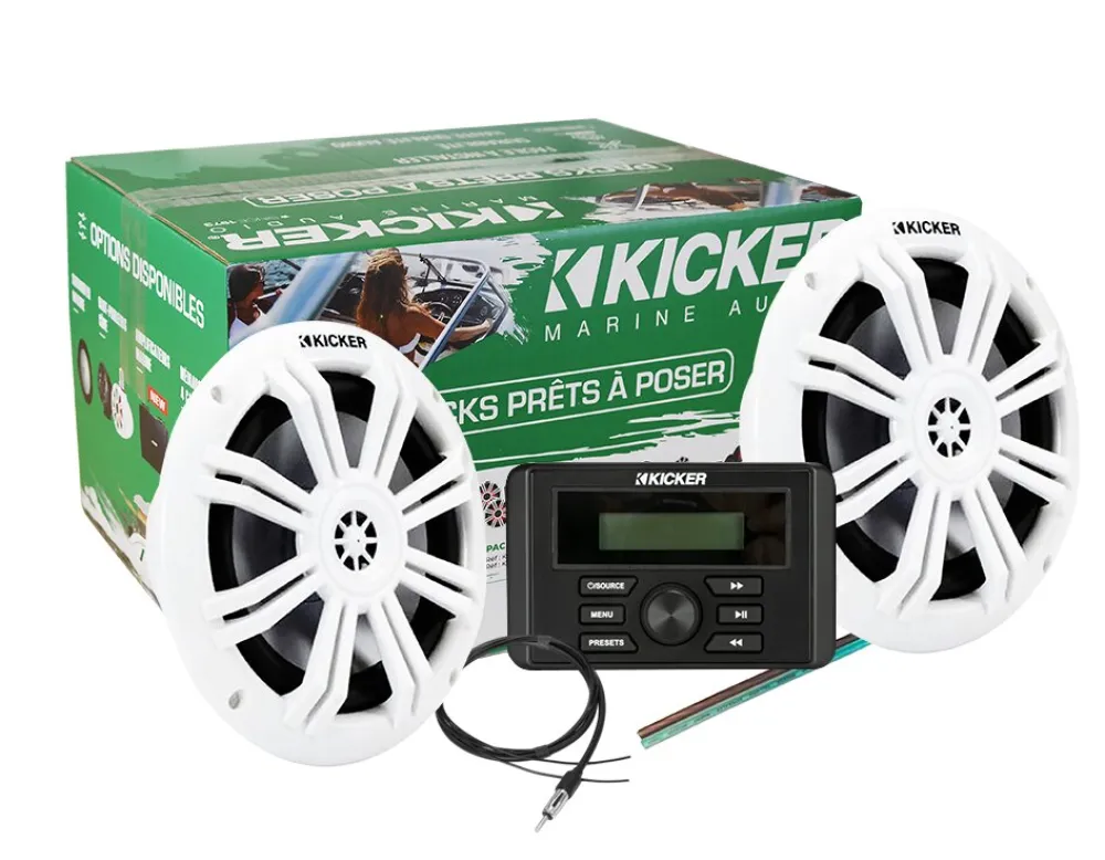 Montez en gamme avec la source KMC3. Ce pack offre une meilleure visibilité grâce à l'écran LCD de la source, parfaitement lisible même en plein soleil marin. Associé aux haut-parleurs marins ECO, c'est le choix idéal pour une installation audio claire, puissante et ergonomique.