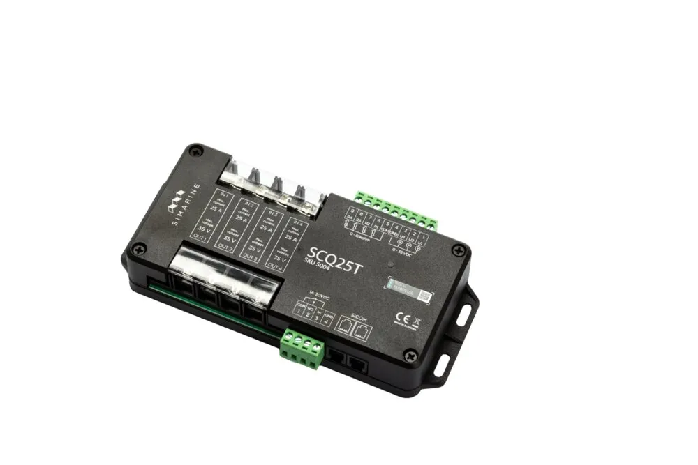 Shunt quadruple 4x25A avec interface pour sondes de niveau et température, avec protocole SiCom et alimentation de 6 à 35Vdc