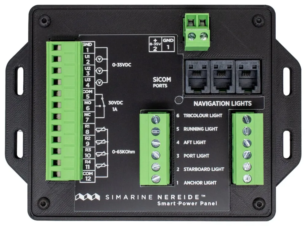 Interface pour 6 feux navigation avec interface pour sondes de niveau et température, avec protocole SiCom et alimentation de 6 à 35Vdc