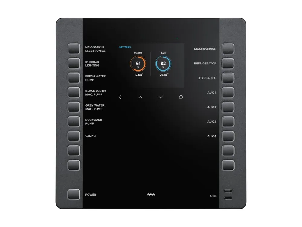 Le tableau Nereide vous apporte une solution de contrôle centralisée et élégante pour superviser l'ensemble de vos ressources énergétiques à bord. Ce panneau de distribution intelligent s'intègre parfaitement à votre poste de navigation.