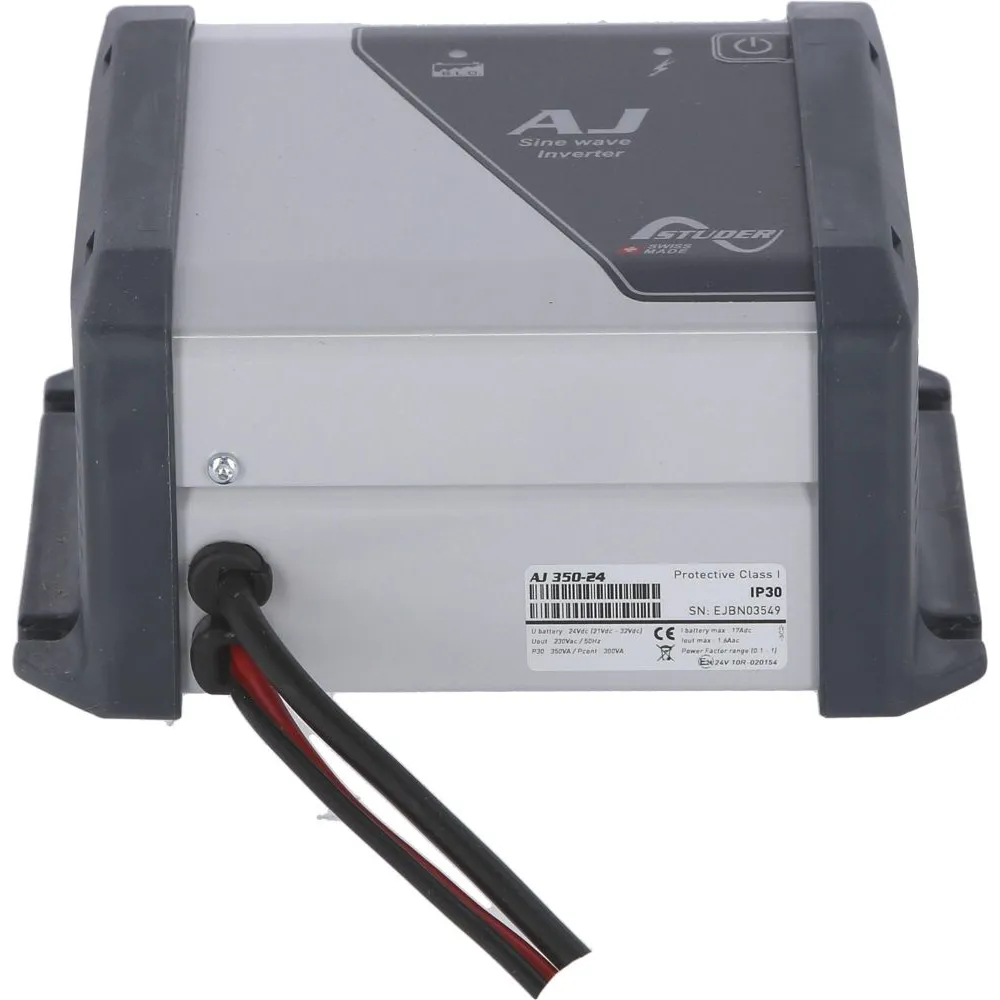 Convertisseurs Studer basse fréquence sinusoïdaux purs qui convertissent la tension 12 ou 24Vcc d'un parc de batteries en tension alternative 230 VAC 50Hz exploitable pour tous les appareils électriques.