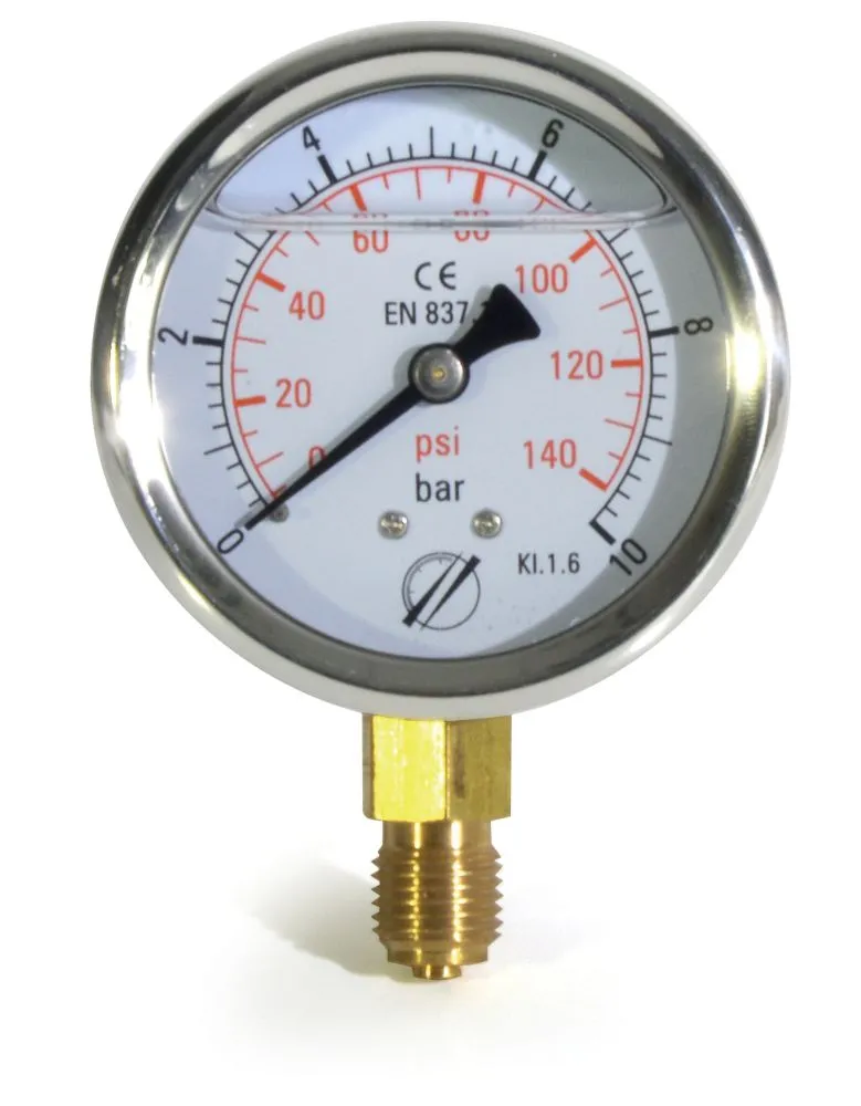 Manomètres mécaniques à bain de glycérine boîtier inox AISI 304. Etanche.